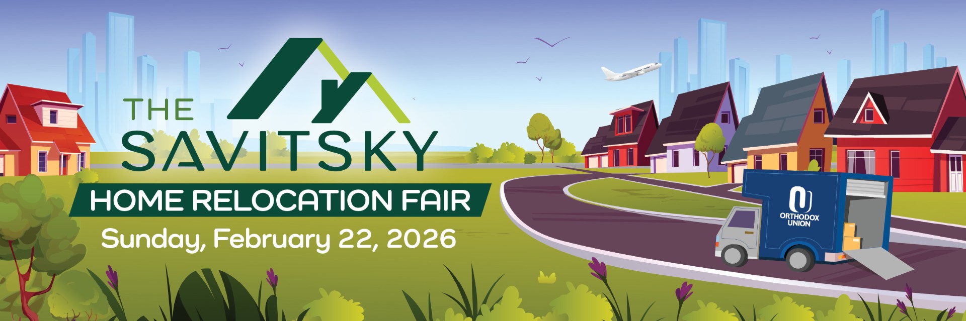 Welcome to the OU SAVITSKY HOME RELOCATION FAIR - Since 2008, the Orthodox Union has been providing resources to assist families, young couples, retirees, and singles looking to relocate to another community. This event will be virtual, and you can participate from the comfort of your own home to "visit" and connect with representatives of over 60 communities and organizations from 23 states and provinces from North in America and Israel.